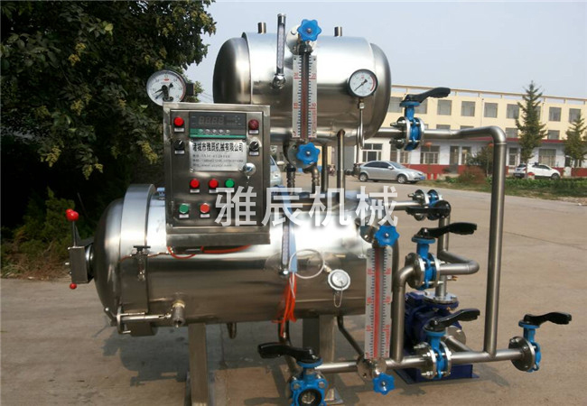 臥式殺菌鍋用蒸汽作介質(zhì)進(jìn)行殺菌的特點是升溫降溫迅速,鍋內(nèi)溫度分布均勻,因此較適用用于罐型不太大的金屬罐頭的反壓殺菌
